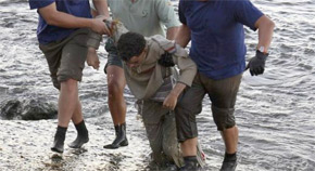 Six occupants ont pu être sauvés par un groupe de surfeurs qui se trouvaient à proximité.