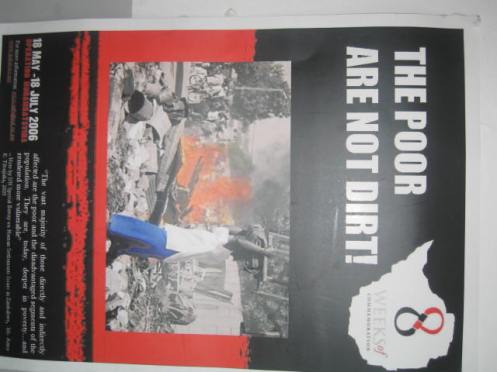 It is very clear to us that this Bill is an attempt to mount a legal attack on the poor. Already the poor, shack dwellers and street traders, are under illegal and violent attack by Municipalities. This Bill is an attempt to legalize the attacks on the poor. We know about Operation Murambatsvina. Last year one of our members visited Harare and last week we hosted two people from Harare. This Bill is an attempt to legalize a KZN Operation Murambatsvina before the World Cup in 2010. We will fight it all the way.