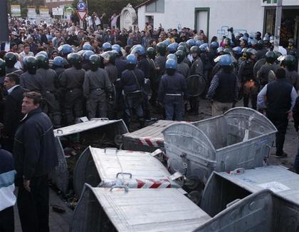 Samedi, des manifestants ont jeté divers projectiles et déchets sur les policiers en tenue anti-émeute, qui ne sont pas intervenus. Le site de la future décharge est un des dix retenus par le nouveau gouvernement de Silvio Berlusconi pour recevoir une partie des ordures qui s’empilent à Naples et ses environs.