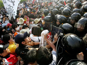 The initially peaceful candle-light vigil has now been turning into anti-goverrnment and anti-President Lee Myung-Bak demonstrations. Hundreds of protesters approached Cheongwadae in Seoul several times for the last couple of days. They were pushed back by the special police unit members.