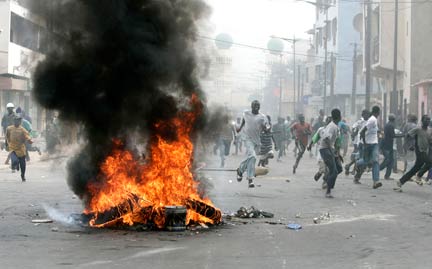 Et à mesure que la situation se calmait à la Médina, les manifestants se sont déplacés vers le quartier voisin de la « Gueule tapée » où des jeunes ont jeté des pierres sur les forces de l’ordre, brûlé des pneus et brisé les étals d’un petit marché attenant. Les manifestants protestaient contre la campagne de « déguerpissement » lancée la semaine dernière par le président Wade contre les nombreux commerçants ambulants qui occupent les trottoirs de nombreuses artères de la ville. Ces derniers accusent le pouvoir de les priver de leur gagne-pain. Mais il semble que d’autres mécontents et des casseurs se sont joints à ces émeutes.