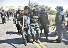 Four policemen were wounded, and three of them were taken hostage, said Emilio Contreras, a police colonel. Community leaders said at least 10 people were injured when police fired tear gas into the crowd.