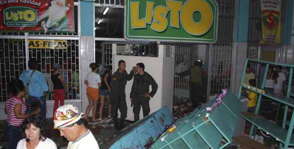 Para las autoridades fue imposible contrarrestar la acción de los saqueadores, quienes dejaron a tres miembros de la Policía y un soldado heridos.