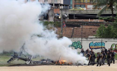 El helicóptero apoyaba a los policías que realizaban una operación contra la banda de narcotraficantes que actúa en esta barriada pobre y desde la que partió un ataque contra la banda rival que controla el tráfico de drogas en el vecino Morro dos Macacos.