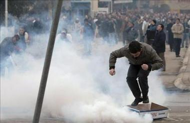 Los policías utilizaron bombas lacrimógenas para desalojar a los manifestantes, pero éstos, en vez de retirarse, respondieron lanzando piedras y objetos contundentes contra los agentes del Control de Multitudes.