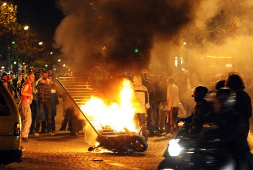 Mercredi soir, après la qualification laborieuse de l’équipe de France pour le Mondial 2010, plusieurs milliers de supporters s’étaient donné rendez-vous pour fêter la victoire. A mesure que la nuit avançait, des affrontements ont finalement éclaté entre certains indivdus et les forces de l’ordre. En haut de l’avenue des Champs-Elysées notamment, des barricades de fortune ont tenté de retenir les représentants de la force publique, qui n’ont notamment pas hésité à faire usage de grenades lacrymogènes.