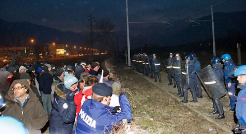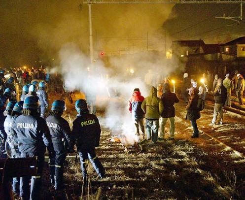 TORINO 21/01/2010 – E alla fine sono arrivati anche i primi scontri. Dopo una settimana di tensione, ieri l’arrivo di una trivella alla stazione di Chiusa San Michele-Condove ha scatenato la reazione dei No Tav che, in una giornata convulsa, sono venuti a contatto con le forze dell’ordine in più occasioni.