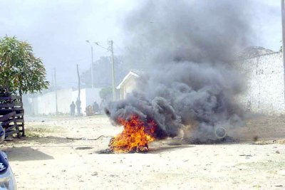 Según las personas que participaban en estos disturbios, protestaban por el decomiso de unas mercancías por parte de la Policía Fiscal y Aduanera en un local comercial ubicado en la carretera Troncal el Caribe, frente a las instalaciones de la empresa Brasilia.