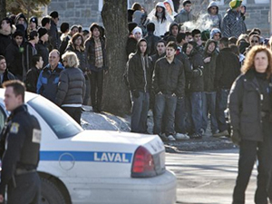 Article mis en ligne le 12 février 201La tension qui a dégénéré, les 9 et 11 février, en affrontements entre la police et les étudiants de l’école secondaire Saint-Maxime, à Chomedey, était plutôt absente, à l’heure du midi, le 12 février. Qu’à cela ne tienne, caméras et journalistes étaient présents, prêts à croquer sur le vif un dérapage qui n’a jamais eu lieu.