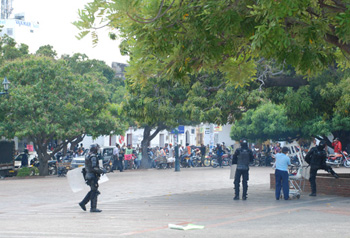 La plaza Alfonso López se convirtió en escenario de nuevos enfrentamientos entre cientos de mototaxistas y agentes de Policía, poco antes del sepelio de Víctor Hugo Ballestas, muerto en hechos confusos el sábado anterior en medio de disturbios en rechazo de los operativos policiales contra el transporte informal.