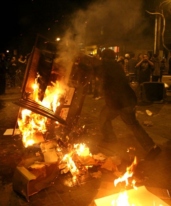 Very late on a Thursday night that saw Cal Basketball get to one win from the Pac-10 Title, Berkeley saw a riot: people – some students, others not – battled Berkeley police on Telegraph Avenue, not far from Haas Pavilion.
