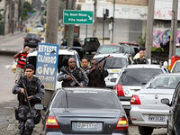Two workers and a police officer were slightly injured in the commotion, according to witnesses.