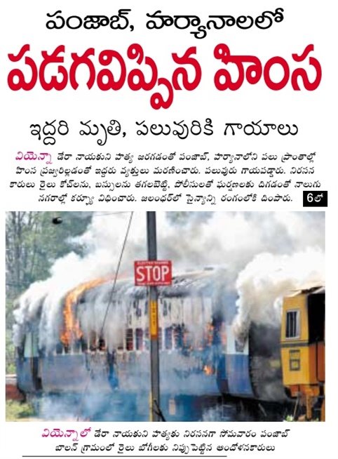 Sect followers torch trains, buses in Haryana, Punjab