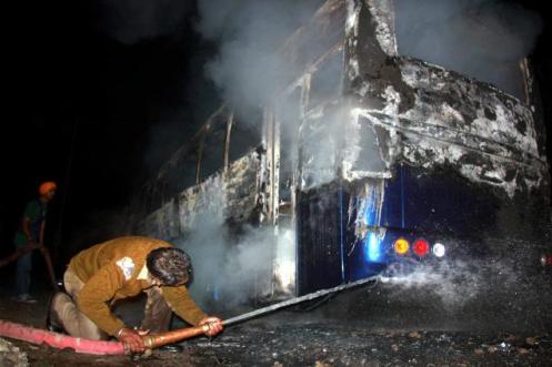There was a report of fire in a bus early this morning in Panipat, though the police maintained that it was not related to the Dera violence.