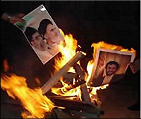 Sur la place Azadi, des jeunes manifestants ont brulé les photos de Khameneï.