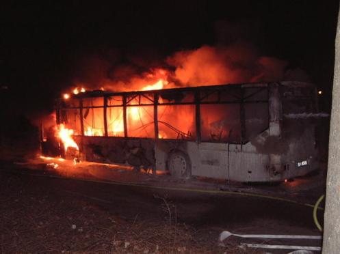 Randalierer setzen Bus in Brand