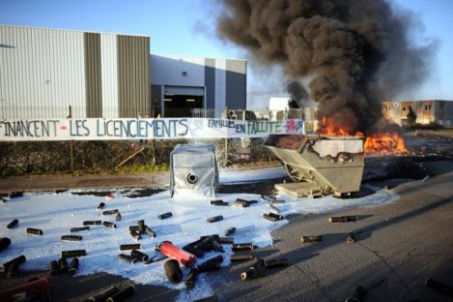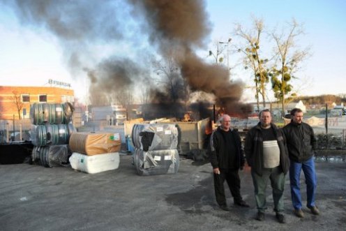 Depuis la veille, une quarantaine de salariés se sont retranchés sur le site et menacent de faire sauter une citerne de gaz pour réclamer un meilleur plan social après la fermeture programmée de leur entreprise. En tout début de journée vendredi, ils ont même installé une petite bonbonne de gaz agrémentée d’un dispositif incendiaire, sur le toit de l’usine, à l’aplomb de la grosse citerne de gaz, elle-même entourée de palettes prêtes à être enflammées. Puis, à l’annonce de l’éventuel report de la table-ronde, ils ont carrément incendié une benne à ordures très proche des locaux de l’entreprise et se disent être en mesure de déclencher à distance l’explosion de la citerne et ont déployé des draps et des rouleaux de moquette pour empêcher les forces de l’ordre d’observer leurs mouvements. Les pompiers, protégés par les gardes mobiles, sont intervenus pour circonscrire l’incendie.