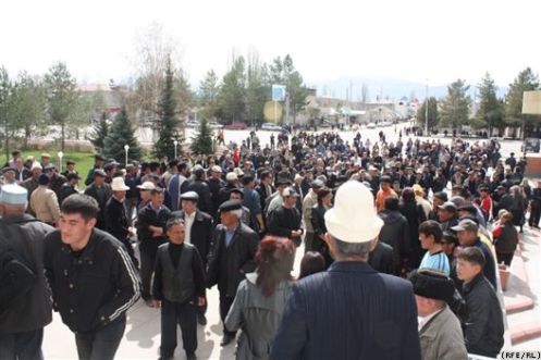 In Tuesday’s unrest, the protesters reportedly set fire to a portrait of Kyrgyz President Kurmanbek Bakiyev. Several people were injured when police fired rubber bullets in response.