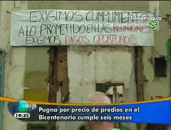 « Que quede claro una cosa, no se ha desalojado una sola familia, ni tampoco se ha demolido una sola vivienda que no haya sido adquirida, de forma totalmente legal, por la Administración Municipal. En este caso del parque Bicentenario, hay dos o tres personas que desean interrumpir el procedimiento y ya llevamos cinco meses de negociaciones y es hora de actuar porque nos vamos atrasar con todo el proyecto », afirmó Salazar.
