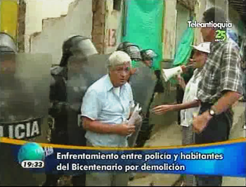 Enfrentamiento entre policía y habitantes del Bicentenario por demolición.