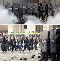 “Estamos investigando si en esa marcha participaron grupos de agitadores que intentan permear varias universidades de la ciudad. Son grupos reconocidos como los punks, los anárquicos, los Maos, los arquitectos, los químicos y los Chavistas. Ellos estarían detrás de los destrozos”, señaló el general Miguel Ángel Bojacá, comandante de la Policía Metropolitana.