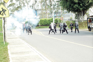 Ante la acción violenta de los estudiantes, fue necesaria la presencia del grupo de la Policía ESMAD, quienes lograron calmar la situación varias horas después.