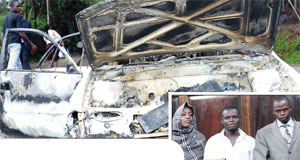The cars were reduced to shells in the Sunday night incident. Police tried to repulse the rioters with teargas canisters in vain. Three of the student leaders arrested on Sunday were yesterday charged with incitement to violence at a Nairobi court.