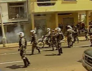 Al llegar más personal empezaron los roces y los incidentes: se lanzaron gases lacrimógenos, hubo toletazos y hasta intercambio de puñetes y patadas.