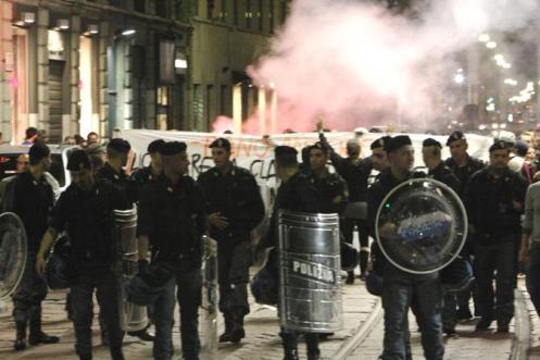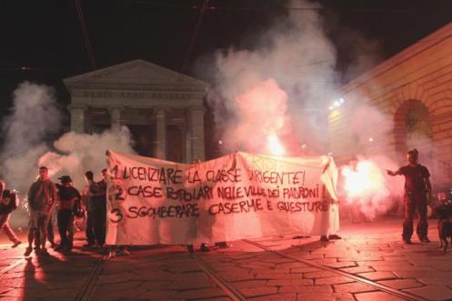 « Un presidio divenuto corteo, un’autocombustione della noia, la spontaneita’ selvaggia ma determinata alla vittoria », raccontano cosi’ gli anarchici la loro notte. Piu’ volte, lungo le stradine che corrono vicino alla stazione ferroviaria, si e’ ripetuto il lancio di oggetti contro le forze dell’ordine, almeno un paio di volte c’e’ stato un contatto tra manifestanti e agenti. Ora, sono una sessantina, fanno sapere gli antagonisti, i ragazzi all’interno dello stabile occupato in zona Porta Genova. « Abbiamo resistito a una notte difficile, scesa tra le cariche della celere sotto alle nostre persiane socchiuse, con i disagi soliti delle occupazioni alla prima ora » scrivono in uno dei loro blog.