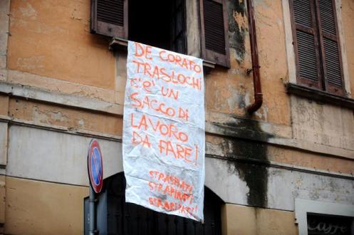 Nel pomeriggio, intanto, si è tenuto di fronte alla prefettura un presidio contro gli sgomberi, per il diritto alla casa, promosso dai sindacati di base e dai movimenti milanesi perché “le case sono diventate di carta, – come recitava l’appello de “Il Cantiere” – sono state immesse sul mercato finanziario per produrre redditività e sostenere il sistema economico delle banche. Ci sono oltre 5mila case vuote e dal 2007 a oggi ci sono state meno di 2mila assegnazioni. […] E intanto i regali ai vari Scajola, Castelli, Lunardi, Matteoli, e gli appalti truccati, i terreni venduti, le tangenti pagate, la gestione mafiosa… un sistema consolidato che coinvolge la criminalità organizzata e i vertici della protezione civile, le istituzioni a molti livelli e spesso anche uomini di Chiesa, in cui a pagare sono sempre i più poveri, e ad arricchirsi sempre gli stessi”.