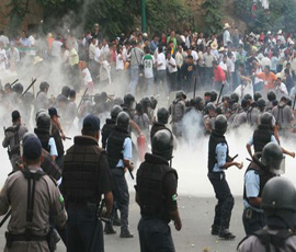 24 JUN 2010-06-25 Al menos una persona muerta y siete heridos dejaron los enfrentamientos entre pobladores del Cono Este de Juliaca, capital de la provincia de San Román, en Puno, debido al desalojo de terrenos.