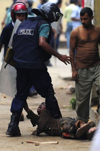 Witnesses said at least 30 people, mainly workers producing garments for global brands, were injured. Pictures showed children apparently being beaten. Ten policemen were also hurt.