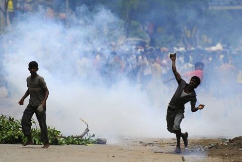 For four hours, a 15,000-strong crowd of garment workers, who sew clothes for top Western brands, blocked the city’s main Rokeya highway, hurling rocks at riot police who responded with tear gas, rubber bullets and water cannon.