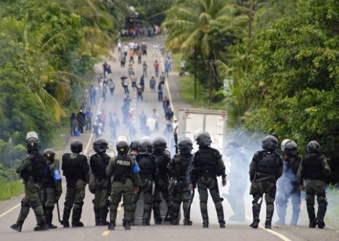 A esta hora los compañeros de FRENADESO Bocas del Toro informa que la Policía reprime con balas a manifestantes en el Puente de Changuinola.
