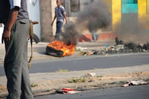 Des manifestants avaient bloqué, à l’aide de pneus enflammés, les routes principales conduisant à l’aéroport et à la plus grande banlieue de Maputo, Matola. Parmi eux figuraient de nombreux adolescents vêtus de leurs uniformes d’écolier.