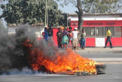 Major roads in and out of Maputo had been barricaded with burning tyres.