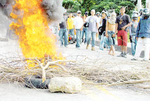 Supuestamente, esta situación provocó el descontento de los mototaxistas de la zona y estos se tomaron la carretera, tomaron rayas de arboles secos y les prendieron fuego lo que alteró la paz en el sector.