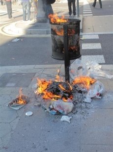 Los antisistema han aprovechado la jornada de huelga general para convertir el centro de Barcelona en una campo de batalla contra las fuerzas de seguridad, con saqueos y daños a comercios, y la quema de contenedores que han utilizado como barricadas. Las imágenes hablan por si solas.