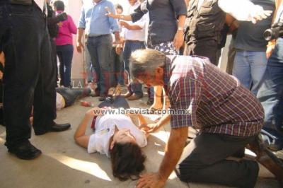 Al romper el cerco de la entrada principal, integrado en su mayoría por mujeres, los simpatizantes de Ramírez Granados pisaron, arrastraron y golpearon a los protestantes, resultando con lesiones Pamela Saldaña Chan y María Elena Magaña Uc, hermana de José Magaña Uc, cercano a Gómez Xecé.