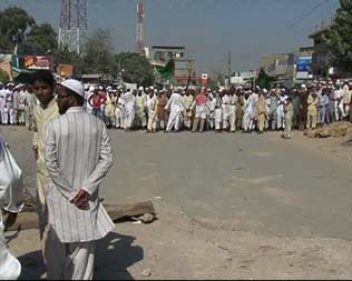 The anger filled activists of Ahl-e-Sunnat Waljamaat staged a sit in on Shershah Road while the funeral of Maulana Amin was in progress. They demanded immediate arrest of the killers. SAMAA