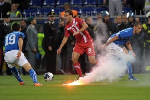 Clashes also took place in Genoa before the game, when a drunken Serb fan was arrested as he threw iron bolts at police. Other hooligans were blocked as they were entering the stadium.
