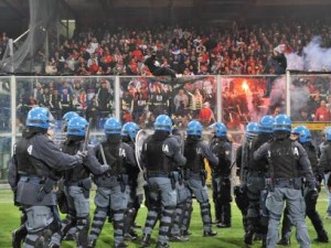 Genoa, Italy – The Euro 2012 qualifier between Italy and Serbia had to be called Tuesday as a group of Serbian fans rioted inside and outside the Luigi Ferraris stadium.