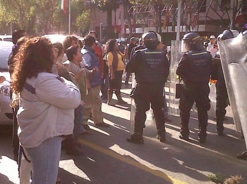 Ante esta situación, llegaron a este punto elementos de la Coordinación de Enlace Institucional de la Secretaría de Seguridad Pública del Distrito Federal (SSPDF) para negociar con los inconformes, integrantes de la Coordinadora Nacional de Trabajadores de la Educación (CNTE) .