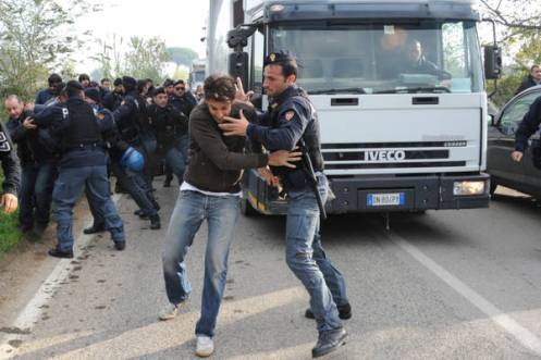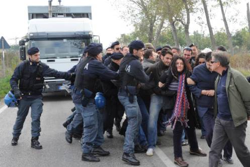 – GIUGLIANO (NAPOLI), 30 OTT – Scontri tra manifestanti e forze dell’ordine si sono verificati davanti al sito di Taverna del Re. I manifestanti hanno tentato di impedire di far uscire i camion dal sito di stoccaggio. I carabinieri hanno tentato di liberare la strada per gli automezzi e alcuni dimostranti sono caduti a terra.