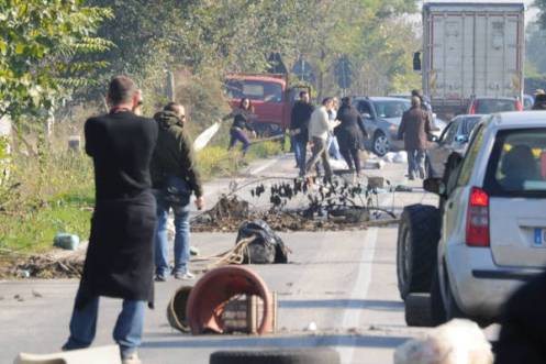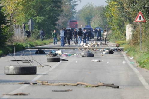 I manifestanti hanno gettato lungo la sede stradale masserizie e rifiuti per impedire l’accesso agli autocompattatori.