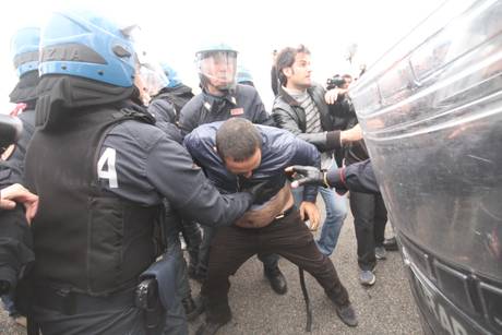 Cariche polizia per consentire passaggio mezzi diretti a sito