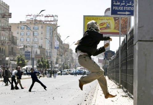 Quelque 3.000 manifestants, pour la plupart des étudiants, étaient sortis mardi matin de l’Université de Sanaa pour se rendre au palais du président Ali Abdallah Saleh, sur la place Sabiine.