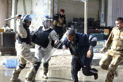 In Baghdad, witnesses said security forces fired live ammunition and used water cannons and tear gas to disperse the crowd. Many people were beaten and chased through the streets. No deaths were reported in the Iraqi capital.