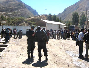 Lima, 18/04/2011 (CNR) — Un muerto y 12 heridos es el saldo que se conoce hasta ahora del enfrentamiento producido ayer domingo entre comuneros de la provincia de Oyón y 600 efectivos policiales que tienen la misión de disolver esta protesta popular, donde más de 300 comuneros de la provincia limeña de Oyón, se encontraban bloqueando la vía de acceso a la Unidad de Producción de Uchucchacua de la Compañía Minera Buenaventura.