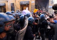 Immediata la reazione della polizia al lancio di oggetti dei manifestanti, che ha risposto caricando il corteo che protestava al grido di “vergogna!”. Dopo…
